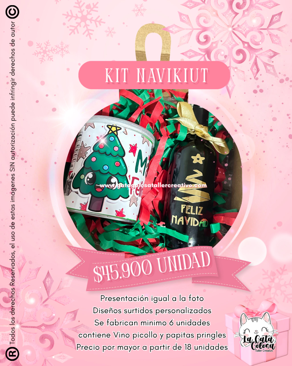 Sorprende a tus seres queridos con este detalle delicioso y festivo que combina tradición y diversión en cada presentación, exactamente como se muestra en la foto. ¡Haz tu pedido y celebra una Navidad inolvidable con el KIT NAVIKIUT!